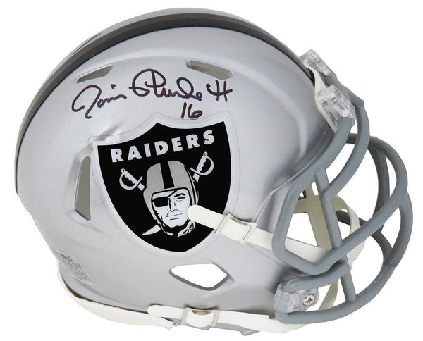 Jim Plunkett signed Raiders Riddell speed mini helmet. Item comes with a Schwartz Sports Memorabilia tamper-proof numbered hologram and Certificate of Authenticity which can be verified online.