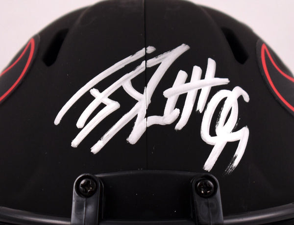 JJ Watt Autographed Houston Texans Eclipse Speed Mini Helmet- Beckett W Hologram *Silver This is a hand autographed helmet of JJ Watt of The Houston Texans. This is a Riddell Football Eclipse Speed Mini Helmet. This item has a Beckett Witnessed Authentication, which Comes with a numbered hologram and a QR code for verification. You can view this item on the Beckett website and it shows when and where the item was signed. It was signed either at a public autograph appearance or a Private Signing. This is a stock photo of the item. Although you may not receive this exact item, the item you receive is virtually identical and brand new in great shape.