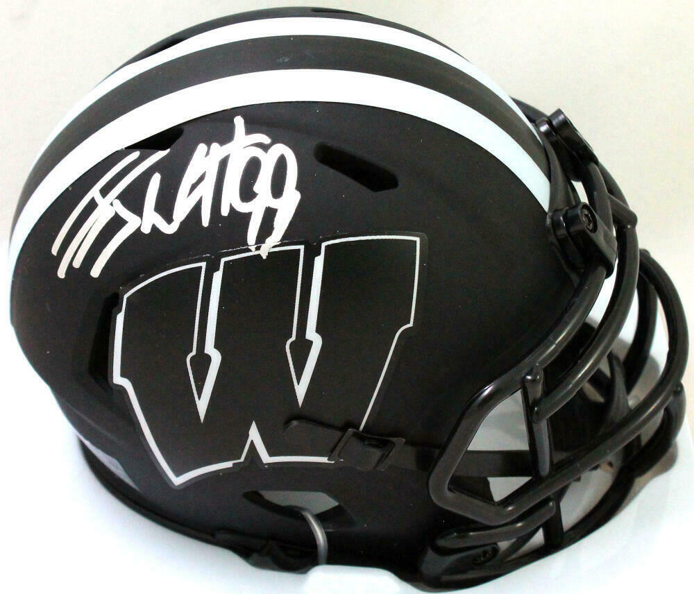 JJ Watt Autographed Wisconsin Badgers Eclipse Speed Mini Helmet - JSA W Auth *Silver This is a hand autographed Helmet of JJ Watt of the Wisconsin Badgers. This is a Riddell Football Eclipse Speed Mini Helmet. This item has a James Spence Witness Protection Authentication, which comes with a numbered sticker and a matching JSA Certificate of Authenticity. You can view this item on the SpenceLOA website and it shows when and where the item was signed. It was signed either at a public autograph appearance or a private signing. This is a stock photo of the item. Although you may not receive this exact item, the item you receive is virtually identical and brand new in great shape.