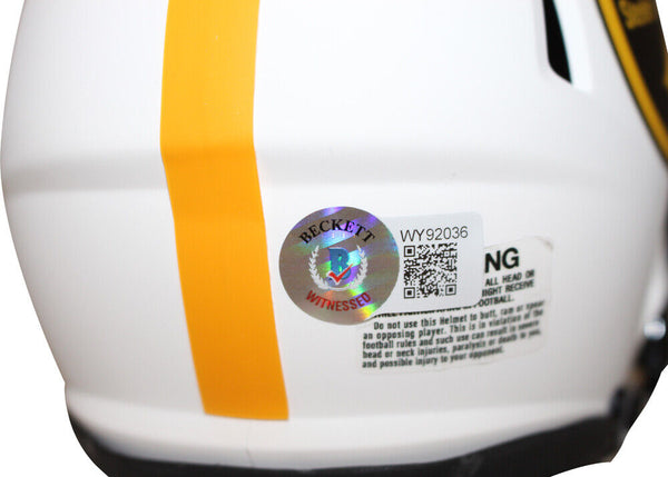 Joe Greene Autographed Pittsburgh Steelers Lunar Mini Helmet Beckett 38881 The number in the listing title is just an inventory sku for our records and is not the authentication number. The item pictured is a stock photo unless otherwise noted. This is a Pittsburgh Steelers lunar speed mini helmet that was personally autographed by Joe Greene. Includes a certificate of authenticity from Beckett Authentication Services (BAS) and Denver Autographs.