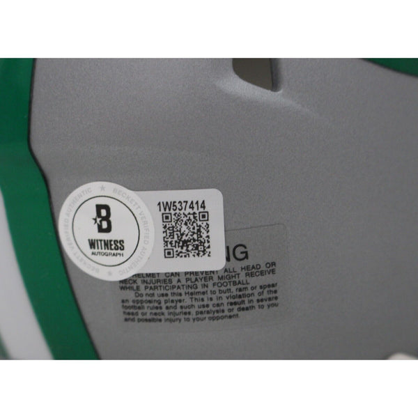 The number in the listing title is just an inventory sku for our records and is not the authentication number. The item pictured is a stock photo unless otherwise noted. This is a New York Jets Blaze Mini Helmet that was personally autographed by Joe Namath. Includes a certificate of authenticity from Beckett Authentication Services (BAS) and Denver Autographs.