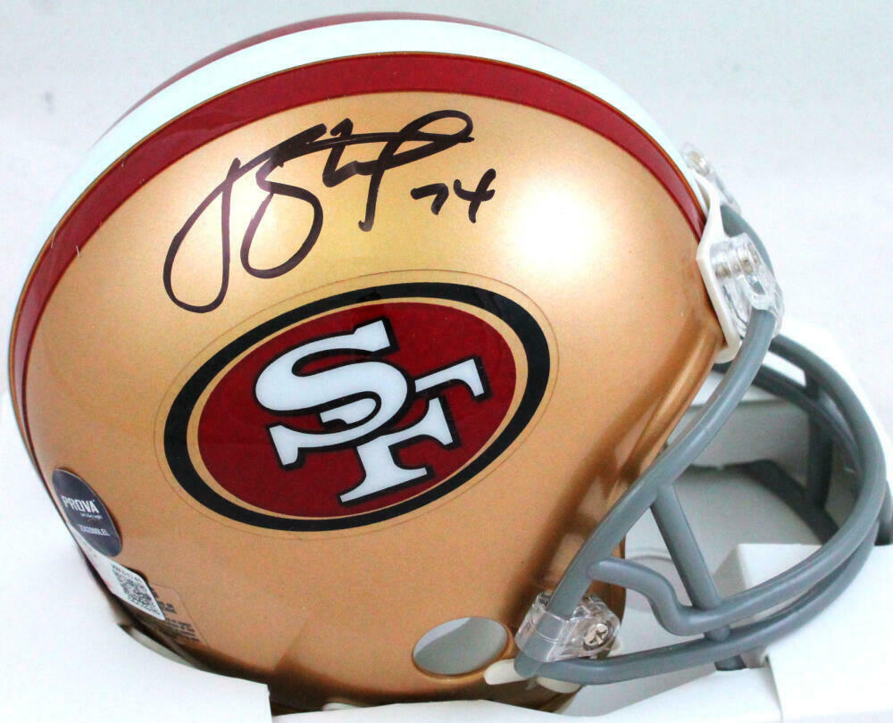 Joe Staley Autographed San Francisco 49ers Mini Helmet-Beckett W Hologram *Black This is a Hand Autographed Helmet of Joe Staley of The San Francisco 49ers. This is a Riddell Football Mini Helmet. This item has a Beckett Witness Authentication, which Comes with a Beckett #'ed Sticker hologram and a generic Beckett COA. You can view this item on the Beckett website, it shows when and where the item was signed. It was signed either at a public autograph appearance or a Private Signing. This is a stock photo of the item. Although you may not receive this exact item, the item you receive is virtually identical and brand new in great shape.