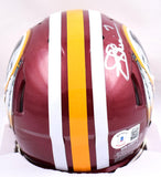 Joe Theismann Mark Rypien Signed Washington Speed Mini Helmet w/SB-Beckett W Hologram *Silver This is a hand autograph of Joe Theismann and Mark Rypien of the Washington Football Team on a Riddell Football Speed Mini Helmet and inscribed with SB MVP by Rypien and SB Champs by Theismann. This item has a Beckett Witnessed Authentication, which comes with a numbered hologram and a QR code for verification. You can view this item on the Beckett website and it shows when and where the item was signed. It was signed either at a public autograph appearance or a private signing. This is a stock photo of the item. Although you may not receive this exact item, the item you receive is virtually identical and brand new in great shape.