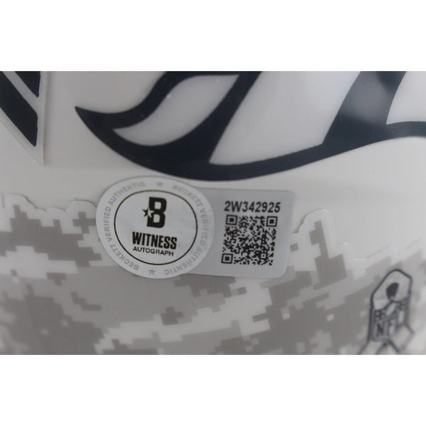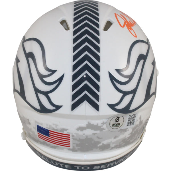 The number in the listing title is just an inventory sku for our records and is not the authentication number. The item pictured is a stock photo unless otherwise noted. This is a Denver Broncos 2024 Salute to Service Mini Helmet that was personally autographed by John Elway. Includes a certificate of authenticity from Beckett Authentication Services (BAS) and Denver Autographs.FREE SHIPPING within the USA on orders over $10!