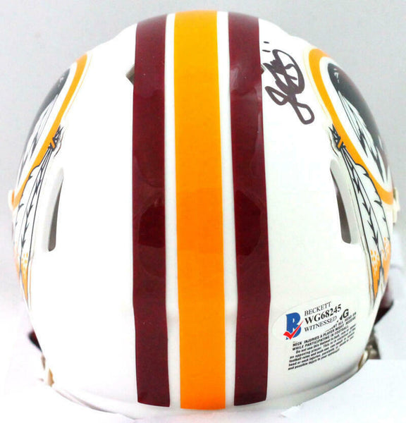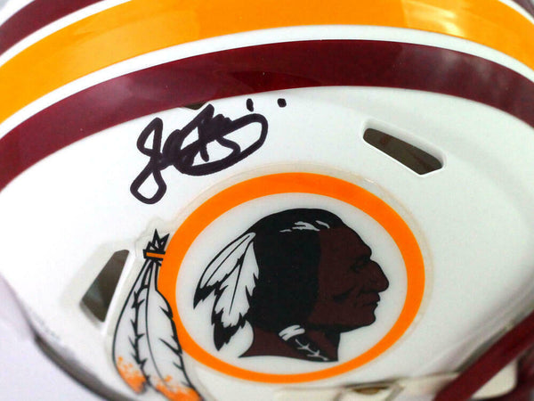 John Riggins Signed Washington Flat White Speed Mini Helmet- Beckett W *Black This is a Hand Autographed Mini Helmet of John Riggins of The Washington team. This is a Riddell Football Flat White Speed Mini Helmet. This item has a Beckett Witnessed Protection Authentication, which comes with a numbered and matching Certificate of Authenticity. You can view this item on the Beckett website, it shows when and where the item was signed. It was signed either at a public autograph appearance or a Private Signing. This is a stock photo of the item. Although you may not receive this exact item, the item you receive is virtually identical, brand new, and in great shape.