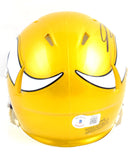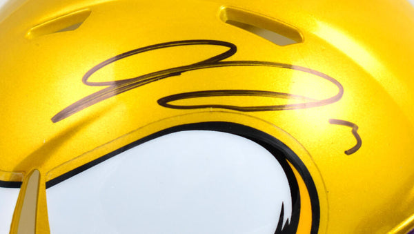 Jordan Addison Autographed Minnesota Vikings Flash Speed Mini Helmet- Beckett W Hologram *Black This is a Jordan Addison of the Minnesota Vikings hand autographed Riddell Football Flash Speed Mini Helmet. This item has a Beckett Witnessed Authentication, which comes with a numbered hologram and a QR code for verification. You can view this item on the Beckett Authentication website. It was signed either at a public autograph appearance or a private signing. This is a stock photo of the item. Although you may not receive this exact item, the item you receive is virtually identical, brand new, and in great shape.