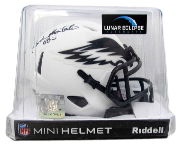 Jordan Mailata Autographed White Mini Lunar Eclipse Football Helmet Philadelphia Eagles. This helmet is authenticated by JSA and includes their tamper-proof sticker and Certificate of Authenticity.