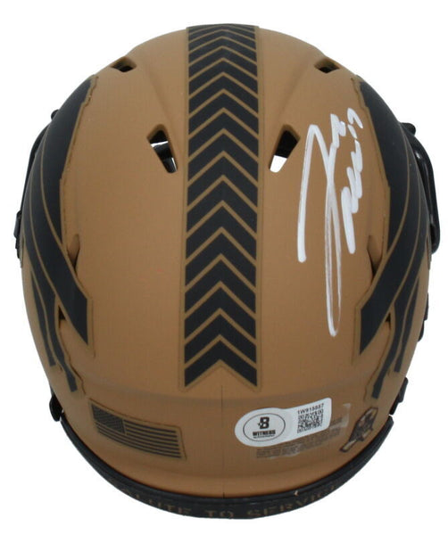 This Buffalo Bills Salute to Service Riddell mini speed helmet has been personally hand-signed by Josh Allen. It comes with an individually numbered, tamper-evident hologram from Beckett Authentic. To ensure authenticity, the hologram can be reviewed online. This process helps to ensure that the product purchased is authentic and eliminates any possibility of duplication or fraud.