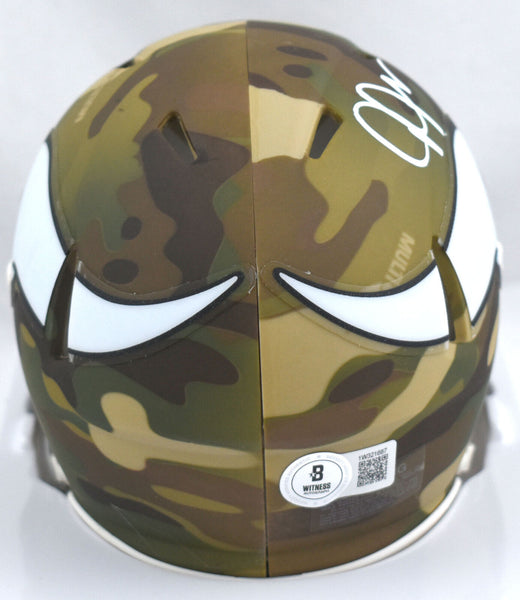 This is a hand autograph of Justin Jefferson of the Minnesota Vikings on a Riddell Football Camo Speed Mini Helmet. This item has a Beckett Witnessed Authentication, which comes with a numbered sticker hologram and a QR code for verification. You can view this item on the Beckett Witnessed Authentication website and it shows when and where the item was signed. It was signed either at a public autograph appearance or a private signing. This is a stock photo of the item. Although you may not receive this exact item, the item you receive is virtually identical and brand new in great shape. This is a hand autograph of Justin Jefferson of the Minnesota Vikings on a Riddell Football Camo Speed Mini Helmet. This item has a Beckett Witnessed Authentication, which comes with a numbered sticker hologram and a QR code for verification. You can view this item on the Beckett Witnessed Authentication website and it shows when and where the item was signed. It was signed either at a public autograph appearance or a private signing. This is a stock photo of the item. Although you may not receive this exact item, the item you receive is virtually identical and brand new in great shape.