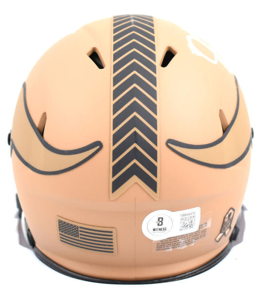 Justin Jefferson Signed Vikings Salute 2023 Speed Mini Helmet- Beckett W *Smear