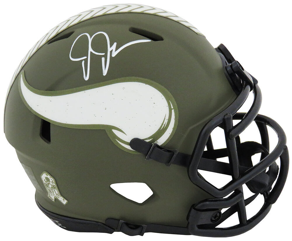 Justin Jefferson signed Minnesota Vikings Salute to Service Riddell speed mini helmet. Item comes with a Schwartz Sports Memorabilia tamper-proof numbered hologram and Certificate of Authenticity which can be verified online.