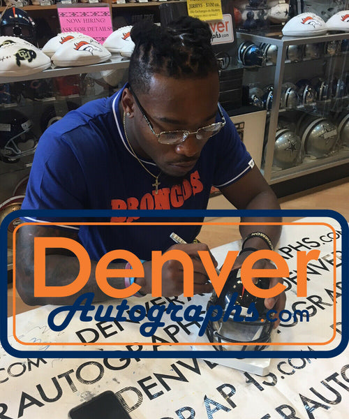 Juwann Winfree Autographed/Signed Denver Broncos Mini Helmet 24297 This is a Denver Broncos Riddell mini helmet that was personally autographed by Juwann Winfree. This helmet includes a certificate of authenticity from Denver Autographs.