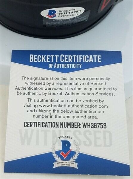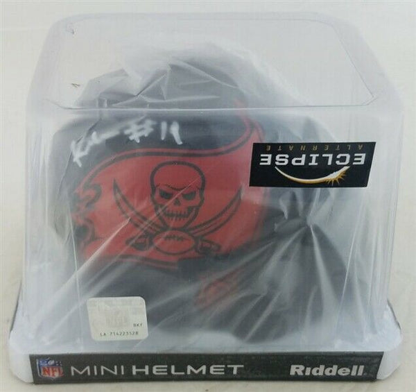 Tampa Bay Buccaneers throwback mini helmet. Hand-signed and inscribed in Silver Paint pen by Keyshawn Johnson. The autograph includes an official Beckett Authentication Service (BAS) hologram and matching COA, for authenticity purposes. The signing of this item was witnessed by Beckett.Authentication: Beckett Witness COA
