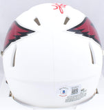 Kurt Warner Autographed Cardinals Flat White Speed Mini Helmet-Beckett W Hologram *Red This is a Kurt Warner of the Arizona Cardinals hand autographed Riddell Flat White Speed mini helmet. This item has a Beckett Witnessed Authentication, which comes with a numbered hologram and a QR code for verification. You can view this item on the Beckett Authentication website, it shows when and where the item was signed. It was signed either at a public autograph appearance or a private signing. This is a stock photo of the item. Although you may not receive this exact item, the item you receive is virtually identical, brand new, and in great shape.