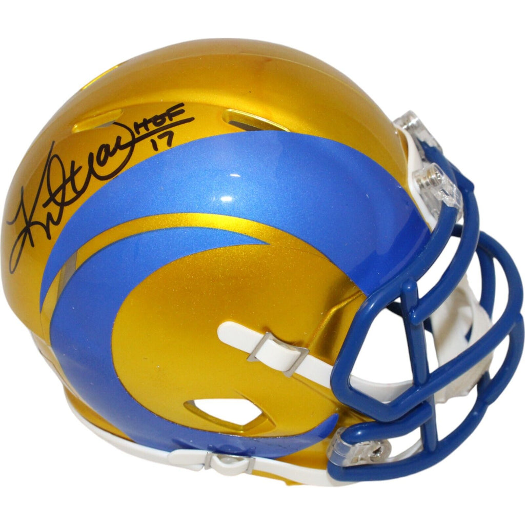 The number in the listing title is just an inventory sku for our records and is not the authentication number. The item pictured is the exact item you will receive, please see photos for condition. This is a Saint Louis Rams Flash Mini Helmet that was personally autographed by Kurt Warner. Includes a certificate of authenticity from Beckett Authentication Services (BAS) and Denver Autographs.FREE SHIPPING within the USA on orders over $10!