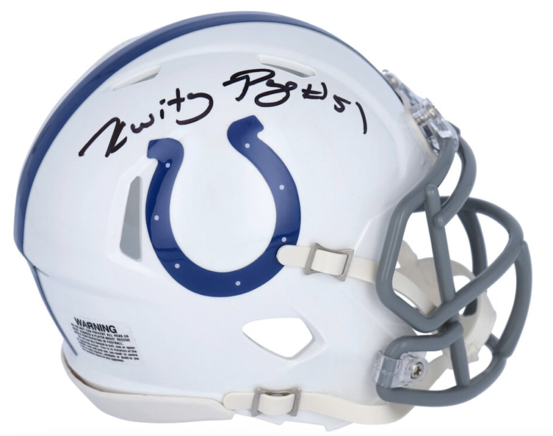 This speed mini helmet has been personally hand-signed by kwity paye. it is officially licensed by the national football league and comes with an individually numbered, tamper-evident hologram from fanatics authentic. to ensure authenticity, the hologram can be reviewed online. this process helps to ensure that the product purchased is authentic and eliminates any possibility of duplication or fraud. money back guarantee! if for any reason you are not completely satisfied with the quality or authenticity of your purchase, we will gladly give you a full refund or exchange, whichever you prefer up to 30 days after purchase. please feel free to e-mail us with any questions. good luck bidding!!! authenticator pre-certified authenticator: fanatics authenticated history of item: kwity paye has signed this item in the presence of a representative from fanatics authenticated. describe how you came to possess this item: super sports center is a fully authorized dealer for upper deck authenticated as well as mounted memories and steiner sports. other information about you and / or the item: super sports center strives to deliver the most authentic in sports memorabilia from trusted companies like mounted memories, steiner sports and upper deck authenticated. if it exists, we can find it for you!