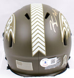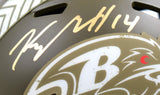 Kyle Hamilton Autographed Baltimore Ravens Salute to Service Speed Mini Helmet-Beckett W Hologram *Gold This is a hand autographed Helmet of Kyle Hamilton of the Baltimore Ravens. This is a Riddell Football Salute to Service Speed Mini Helmet. This item has a Beckett Witnessed Authentication, which comes with a numbered hologram and a QR code for verification. You can view this item on the Beckett Authentication website. It was signed either at a public autograph appearance or a private signing. This is a stock photo of the item. Although you may not receive this exact item, the item you receive is virtually identical and brand new in great shape.
