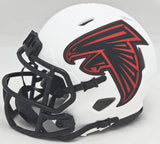 This is an Atlanta Falcons Lunar Eclipse White Speed Mini Helmet that has been hand signed by Kyle Pitts. The Eclipse helmets are delicate and may have some marks or scratches on them. This item has been witnessed and certified authentic by Beckett Authentication (BAS) and comes with their tamper-proof witness sticker.