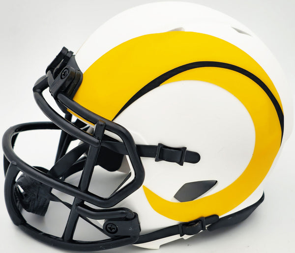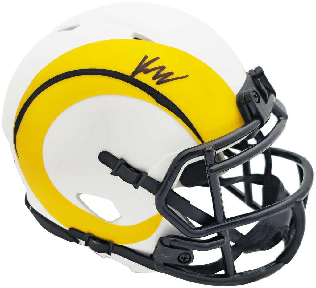 This is a Los Angeles Rams Lunar Eclipse White Speed Mini Helmet that has been hand signed by Kyren Williams. The Eclipse helmets are delicate and may have some marks or scratches on them. This item has been witnessed and certified authentic by Beckett Authentication (BAS) and comes with their tamper-proof witness sticker.