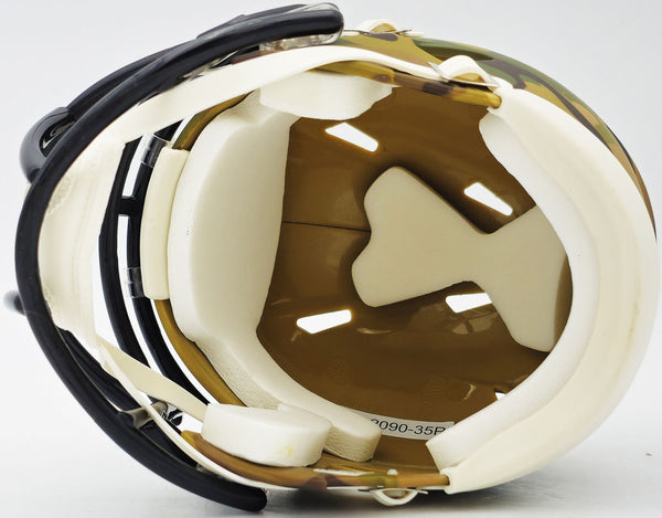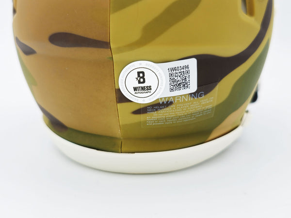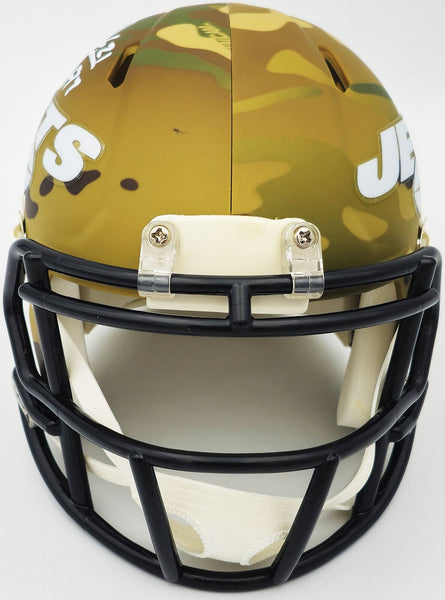 This is a New York Jets Camo Speed Mini Helmet that has been hand signed by LaDainian Tomlinson. Because each Camo helmet is hand-dipped using water-transfer technology there may be slight imperfections. This item was inscribed "HOF 17." This item has been witnessed and certified authentic by Beckett Authentication (BAS) and comes with their tamper-proof witness sticker.