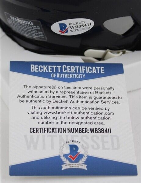 Riddell Chicago Bears speed mini-helmet. Hand-signed by Lance Briggs.The autograph includes an official Beckett Authentication Services serially numbered hologram and matching COA for authenticity purposes. The signing of this item was witnessed by Beckett.Authentication: Beckett COA