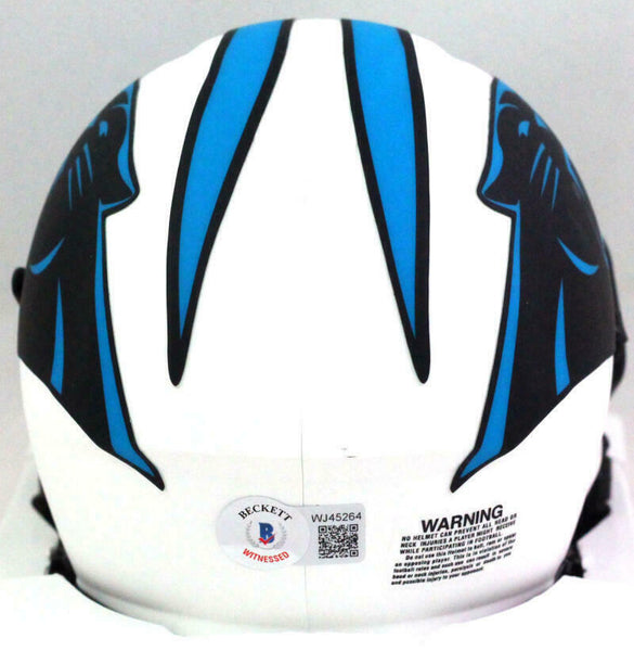 This is a Luke Kuechly of the Carolina Panthers hand autographed Riddell Lunar Speed Mini Helmet. This item has a Beckett Witnessed Authentication, which comes with a numbered hologram. You can view this item on the Beckett website and it shows when and where the item was signed. It was signed either at a public autograph appearance or a private signing. This is a stock photo of the item. Although you may not receive this exact item, the item you receive is virtually identical, brand new, and in great shape. This is a Luke Kuechly of the Carolina Panthers hand autographed Riddell Lunar Speed Mini Helmet. This item has a Beckett Witnessed Authentication, which comes with a numbered hologram. You can view this item on the Beckett website and it shows when and where the item was signed. It was signed either at a public autograph appearance or a private signing. This is a stock photo of the item. Although you may not receive this exact item, the item you receive is virtually identical, brand new, and in great shape.