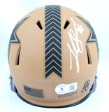 Luke Schoonmaker Autographed Dallas Cowboys Salute to Service 2023 Speed Mini Helmet - Beckett W Hologram *White This is a Hand Autographed Mini Helmet of Luke Schoonmaker of The Dallas Cowboys. This is a Riddell Football Salute to Service 2023 Speed Mini Helmet. This item has a Beckett Witnessed Authentication, which Comes with a Beckett #'ed hologram and a QR code for verification. You can view this item on the Beckett website and it shows when and where the item was signed. It was signed either at a public autograph appearance or a Private Signing. This is a stock photo of the item. Although you may not receive this exact item, the item you receive is virtually identical and brand new in great shape.