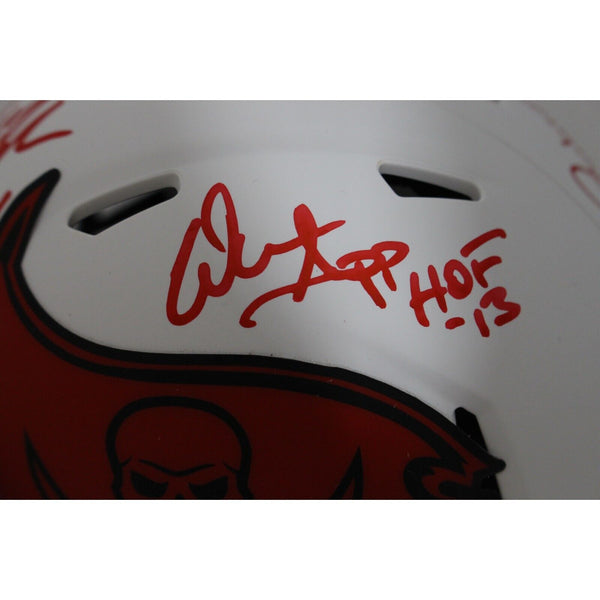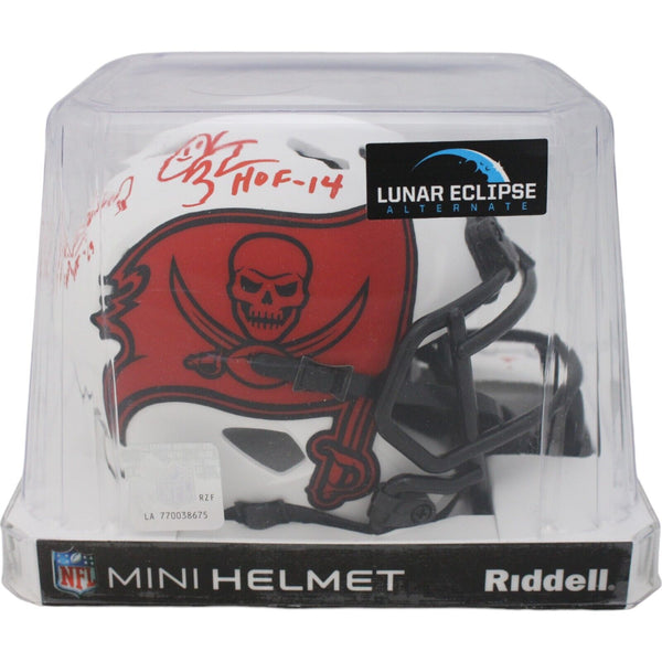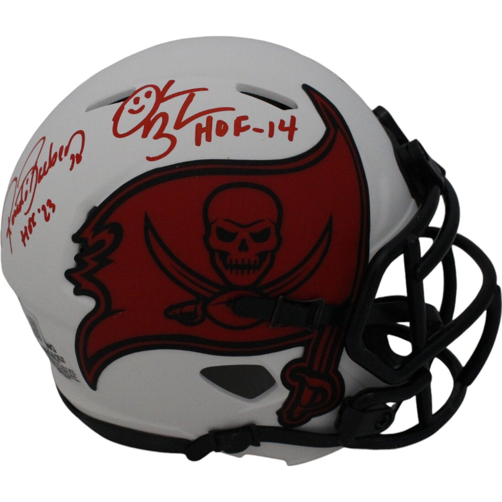 The number in the listing title is just an inventory sku for our records and is not the authentication number. The item pictured is a stock photo unless otherwise noted. This is a Tampa Bay Buccaneers Lunar Mini Helmet that was personally autographed by John Lynch, Derrick Brooks, Warren Sapp, and Ronde Barber. Includes a certificate of authenticity from Beckett Grading Services (BAS) and Denver Autographs.FREE SHIPPING within the USA on orders over $10!