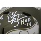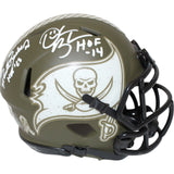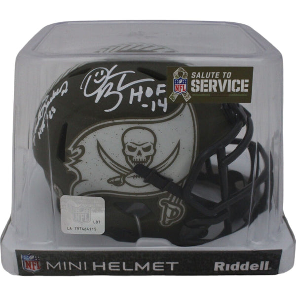 The number in the listing title is just an inventory sku for our records and is not the authentication number. The item pictured is a stock photo unless otherwise noted. This is a Tampa Bay Buccaneers Salute to Service Mini Helmet that was personally autographed by John Lynch, Derrick Brooks, Warren Sapp, and Ronde Barber. Includes a certificate of authenticity from Beckett Grading Services (BAS) and Denver Autographs.