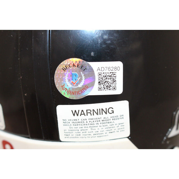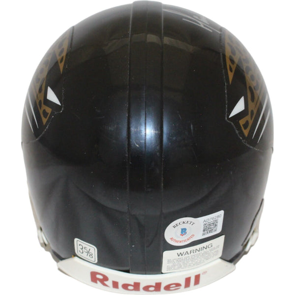 The number in the listing title is just an inventory sku for our records and is not the authentication number. This is the exact item that you will receive so please see pictures for condition. This is a Jacksonville Jaguars VSR4 replica mini helmet that was personally autographed by Mark Brunell. Includes a certificate of authenticity from Beckett Authentication Services (BAS) and Denver Autographs.