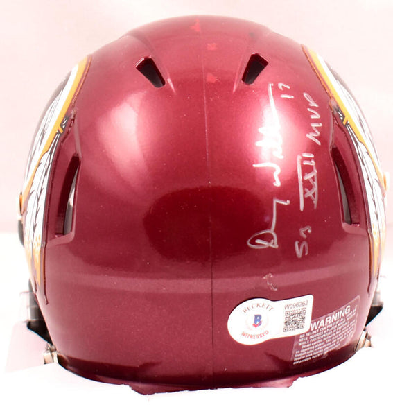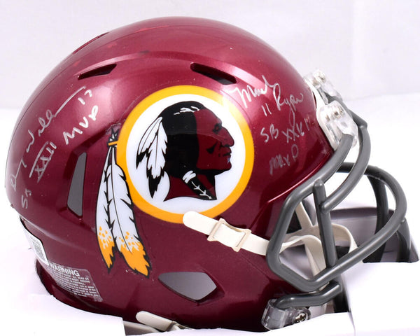 Mark Rypien Doug Williams Autographed WFT Speed Mini Helmet w/SB MVP #2-Beckett W Hologram *Silver This is a Mark Rypien and Doug Williams of the Washington Football Team hand autographed Riddell Football Speed Mini Helmet. Inscribed SB MVP. This item has a Beckett Authentication, which comes with a Beckett numbered sticker hologram and a QR code for verification. You can view this item on the Beckett Authentication website, it shows when and where the item was signed. It was signed either at a public autograph appearance or a private signing. This is a stock photo of the item. Although you may not receive this exact item, the item you receive is virtually identical and brand new in great shape.