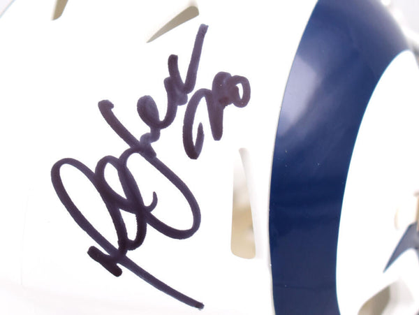 Marshall Faulk Autographed Rams Flat White Speed Mini Helmet-Beckett W Hologram *Black This is a Marshall Faulk of the St. Louis Rams hand autographed Riddell Flat White Speed mini helmet. This item has a Beckett Witnessed Authentication, which comes with a numbered hologram and a QR code for verification. You can view this item on the Beckett Authentication website, it shows when and where the item was signed. It was signed either at a public autograph appearance or a private signing. This is a stock photo of the item. Although you may not receive this exact item, the item you receive is virtually identical, brand new, and in great shape.