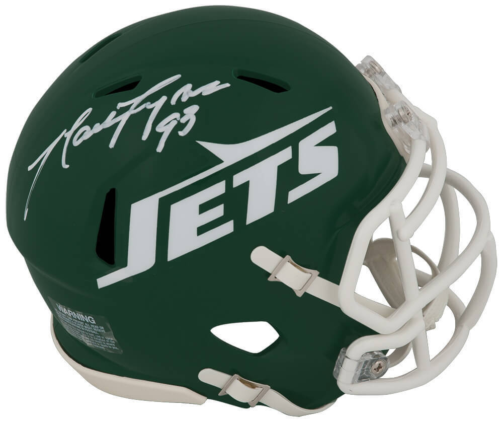 Marty Lyons signed New York Jets green throwback Riddell speed mini helmet. Item comes with a Schwartz Sports Memorabilia tamper-proof numbered hologram and Certificate of Authenticity which can be verified online.