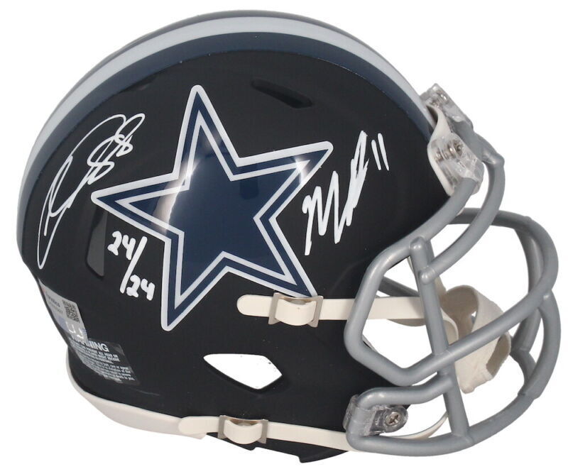 This mini helmet has been personally hand-signed by micah parsons and ceedee lamb. it is officially licensed by the national football league and comes with an individually numbered, tamper-evident hologram from fanatics authentic. to ensure authenticity, the hologram can be reviewed online. this process helps to ensure that the product purchased is authentic and eliminates any possibility of duplication or fraud.this helmet is limited to 24 and you are bidding on a random number from the edition.