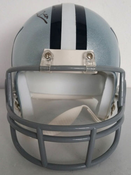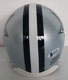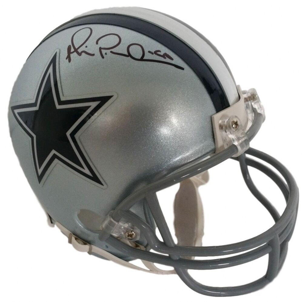 Riddell Dallas Cowboys mini Speed helmet. Hand-signed by Michael Irvin (HOF).Irvin was nicknamed "The Playmaker" due to his penchant for making big plays in big games during his college and pro careers. He is one of three key Cowboys offensive players who helped the team attain three Super Bowl wins: he is known as one of "The Triplets" along with Troy Aikman and Emmitt Smith. The autograph includes an official Beckett Authentication Services serially numbered hologram for authenticity purposes.Authentication: Beckett Hologram