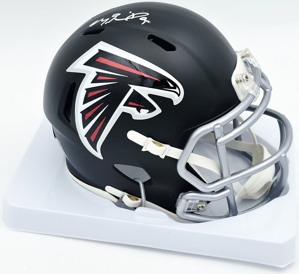 This is an Atlanta Falcons Black Speed Mini Helmet that has been hand signed by Michael Penix Jr. There is an imperfection in the signature as shown. This item has been witnessed and certified authentic by Beckett Authentication (BAS) and comes with their tamper-proof witness hologram.
