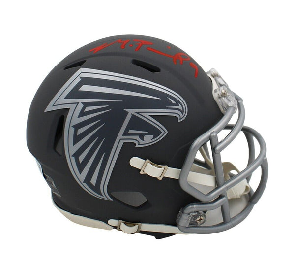 An Atlanta Falcons Speed Slate NFL Mini Helmet signed by Michael Penix Jr. The item and signature are in excellent condition. Michael is a quarterback and was the first round draft pick for the Atlanta Falcons in 2024. In college, he earned the Maxwell Award as well as First Team All American. AUTHENTICATION: The item is accompanied by a Beckett Serial Numbered and Databased Hologram - Picture of Michael from the signing