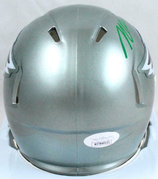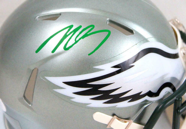 Michael Vick Autographed Eagles Flash Speed Mini Helmet- JSA W Auth *Green This is a hand autograph of Michael Vick of the Eagles on a Riddell Football Flash Speed Mini Helmet. This item has a James Spence Witness Protection Authentication, which comes with a JSA numbered sticker and a matching Certificate of Authenticity. You can view this item on the SpenceLOA website. It was signed either at a public autograph appearance or a private signing. This is a stock photo of the item. Although you may not receive this exact item, the item you receive is virtually identical and brand new in great shape.