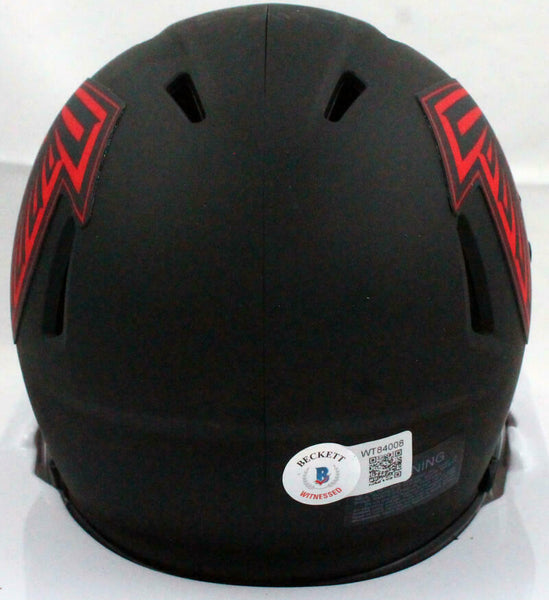 Michael Vick Autographed Falcons Eclipse Speed Mini Helmet-Beckett W Hologram *Silver This is a hand autograph of Michael Vick of the Falcons on a Riddell Football Eclipse Speed Mini Helmet. This item has a Beckett Witnessed Authentication, which comes with a Beckett numbered hologram and a QR code for verification. You can view this item on the Beckett website. It was signed either at a public autograph appearance or a private signing. This is a stock photo of the item. Although you may not receive this exact item, the item you receive is virtually identical and brand new in great shape.