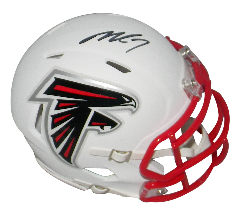 Michael Vick, former Pro Bowl quarterback for the Atlanta Falcons, has hand signed this Falcons Riddell Speed Flat White mini helmet at a private signing. This item comes with a certificate of authenticity (COA) from JSA - James Spence Authentication and was signed in the presence of one of their representatives. You will receive a serial-numbered COA along with a matching serial-numbered sticker on the helmet. The authenticity can be verified online by entering the serial number.Item pictured may not be the exact item you will receive. It will be similar quality, and we guarantee your satisfaction.