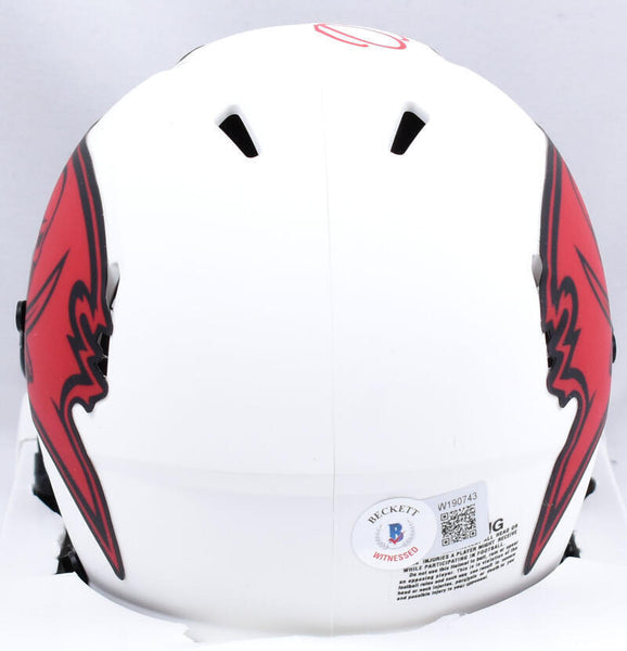 Mike Alstott Autographed Buccaneers Lunar Speed Mini Helmet *top- Beckett W Hologram *Red This is a Mike Alstott of the Tampa Bay Buccaneers hand autographed Riddell football Lunar Speed mini helmet. This item has a Beckett Witnessed Authentication, which comes with a numbered hologram and a QR code for verification. You can view this item on the Beckett Authentication website, it shows when and where the item was signed. It was signed either at a public autograph appearance or a private signing. This is a stock photo of the item. Although you may not receive this exact item, the item you receive is virtually identical, brand new, and in great shape.