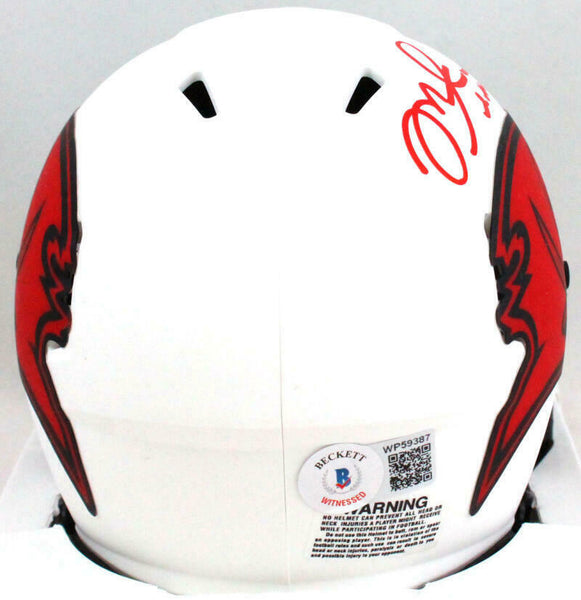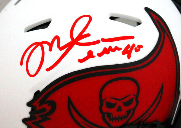 Mike Alstott Autographed Tampa Bay Bucs Lunar Speed Mini Helmet - Beckett W Hologram *Red This is a Mike Alstott of the Tampa Bay Buccaneers hand autographed Riddell football Lunar Speed mini helmet. This item has a Beckett Witnessed Authentication, which comes with a numbered hologram and a generic Beckett Certificate of Authenticity. You can view this item on the Beckett Authentication website, it shows when and where the item was signed. It was signed either at a public autograph appearance or a private signing. This is a stock photo of the item. Although you may not receive this exact item, the item you receive is virtually identical, brand new, and in great shape.