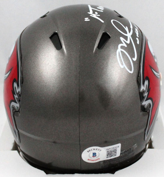 Mike Alstott Autographed Tampa Bay Buccaneers 97-13 Speed Mini Helmet w/A-Train-Beckett W Hologram *White This is a Mike Alstott of the Tampa Bay Buccaneers hand autographed Riddell Football 97-13 throwback speed mini helmet inscribed with A-Train. This item has a Beckett Witnessed Authentication, which comes with a numbered sticker hologram and a QR code for verification. You can view this item on the Beckett Authentication website, it shows when and where the item was signed. It was signed either at a public autograph appearance or a private signing. This is a stock photo of the item. Although you may not receive this exact item, the item you receive is virtually identical, brand new, and in great shape.
