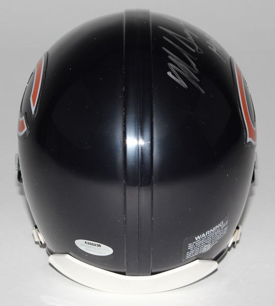 Chicago Bears mini-helmet hand-signed and inscribed in silver paint pen by Mike Singletary (HOF). The autograph includes an official Schwartz Sports Hologram and matching COA for authenticity purposes.Authentication: Schwartz Sports COA