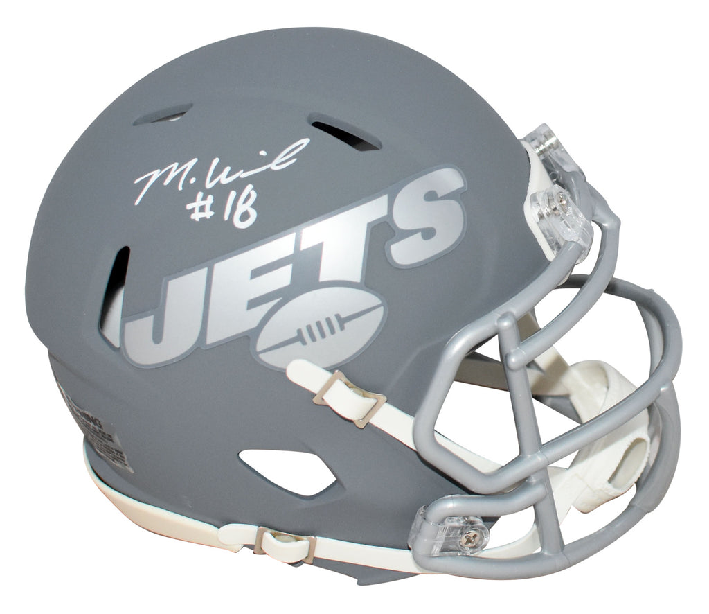 Mike Williams, wide receiver for the New York Jets, has hand signed this Jets Riddell Speed Slate mini helmet at a private signing. This item is authenticated by Beckett Authentication Services and was signed in the presence of one of their representatives. Their tamper-evident hologram featuring a QR code and serial number is on the item. The authenticity can be verified online by entering the serial number or scanning the QR code.Item pictured may not be the exact item you will receive. It will be similar quality, and we guarantee your satisfaction.