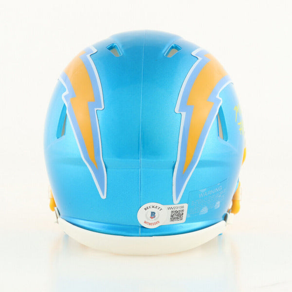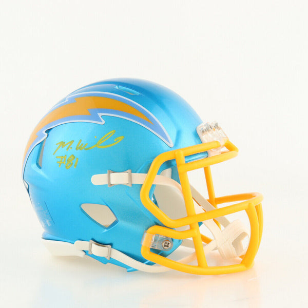 Riddell Los Angeles Chargers speed mini helmet. Hand-signed by Mike Williams.The lot / autograph(s) includes an official Beckett Authentication Services serially numbered hologram for authenticity purposes. The signing of this item was witnessed by Beckett.Authentication: Beckett Hologram