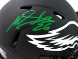 Miles Sanders Autographed Philadelphia Eagles Eclipse Speed Mini Helmet - JSA W Auth *Green This is a hand autograph of Miles Sanders of the Philadelphia Eagles on a Riddell Football Eclipse Speed Mini Helmet. This item has a James Spence Witness Protection Authentication, which comes with a numbered sticker and a matching JSA Certificate of Authenticity. You can view this item on the SpenceLOA website and it shows when and where the item was signed. It was signed either at a public autograph appearance or a private signing. This is a stock photo of the item. Although you may not receive this exact item, the item you receive is virtually identical and brand new in great shape.
