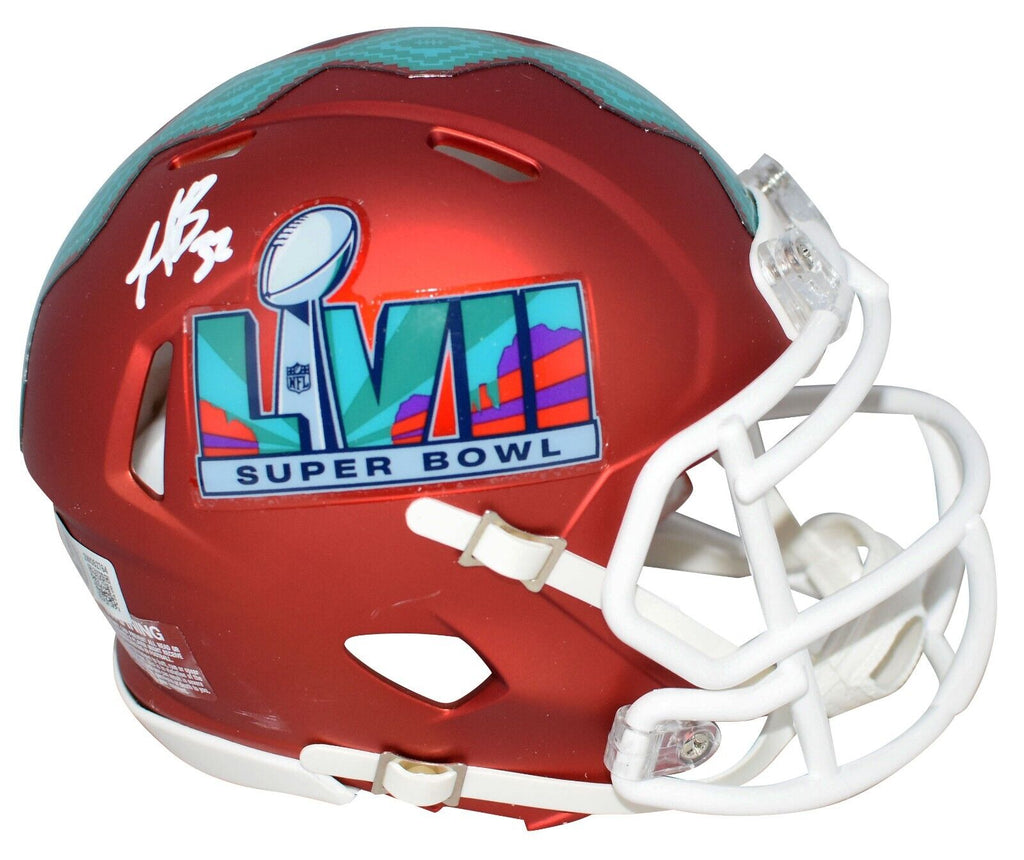 Nick Bolton, star linebacker for the Kansas City Chiefs, has hand signed this Super Bowl LVII Riddell Speed mini helmet at a private signing. This item is authenticated by Beckett Authentication Services and was signed in the presence of one of their representatives. Their tamper-evident hologram featuring a QR code and serial number is on the item. The authenticity can be verified online by entering the serial number or scanning the QR code.Item pictured may not be the exact item you will receive. It will be similar quality, and we guarantee your satisfaction.