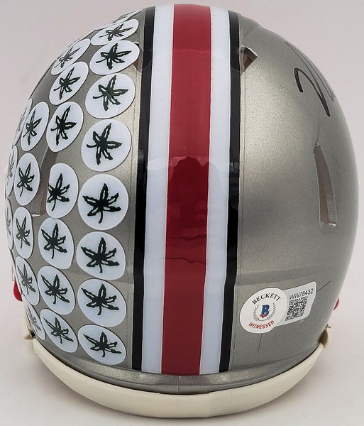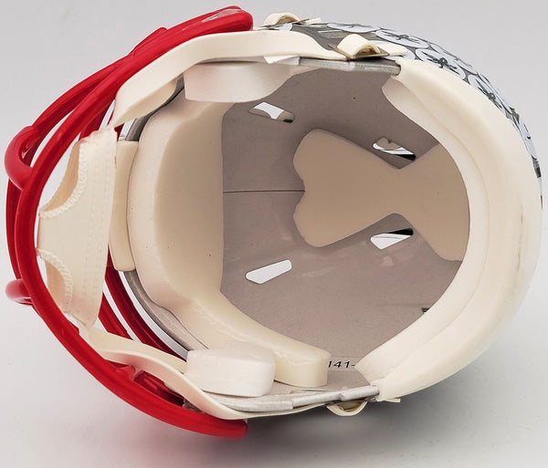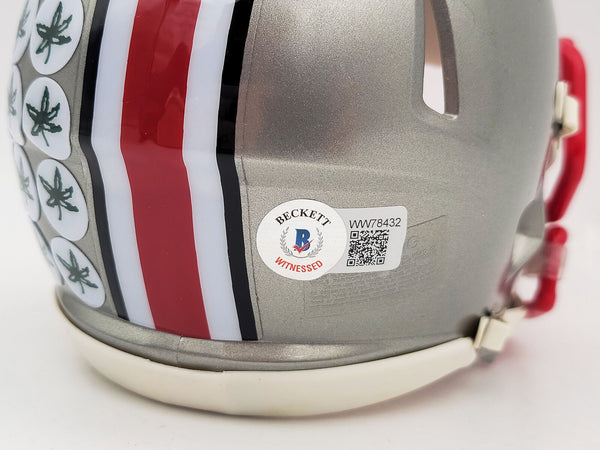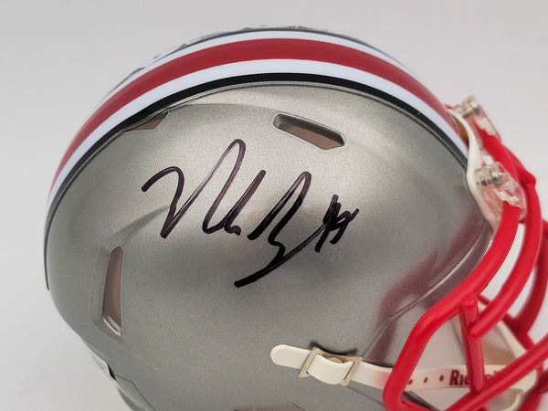 This is an Ohio State Buckeyes Flash Gray Speed Mini Helmet that has been hand signed by Nick Bosa. The Flash helmets are delicate and may have some marks or scratches on them. This item has been certified authentic by Beckett Authentication (BAS) and comes with their tamper-proof QR Code sticker that can be verified on the Beckett-authentication.com.