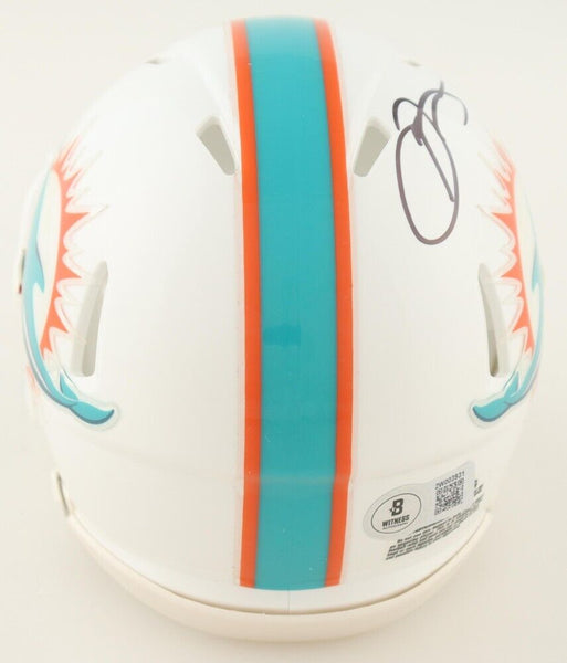 Riddell Miami Dolphins Speed mini helmet. Hand-signed by Odell Beckham Jr.The autograph includes an official Beckett Authentication Services serially numbered hologram and QR Code Card for authenticity purposes. The signing of this item was witnessed by Beckett.Authentication: Beckett Hologram with QR Code Card